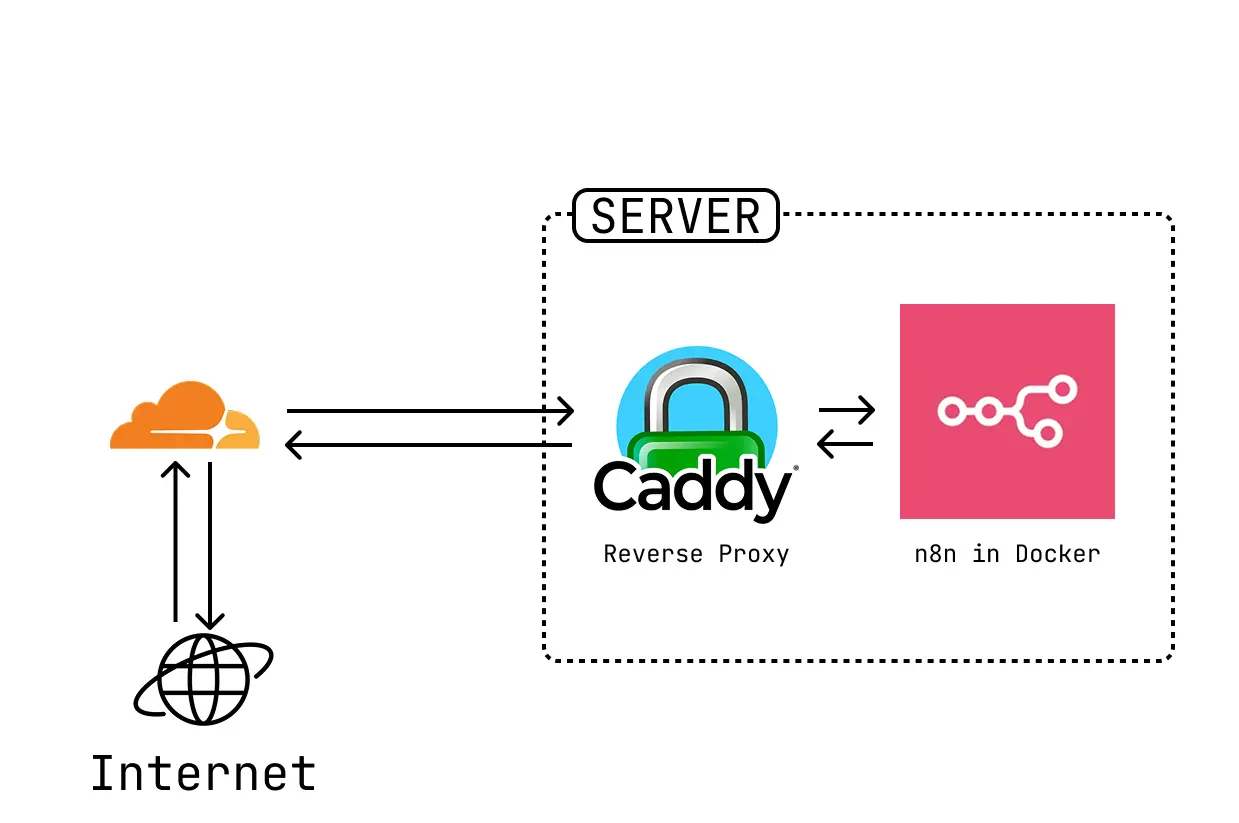 A reverse proxy is another application that sits in front of n8n, handles the creation of SSL certificates and redirects HTTP to HTTPS. There are many reverse proxies out there, but we will use Caddy for this guide.