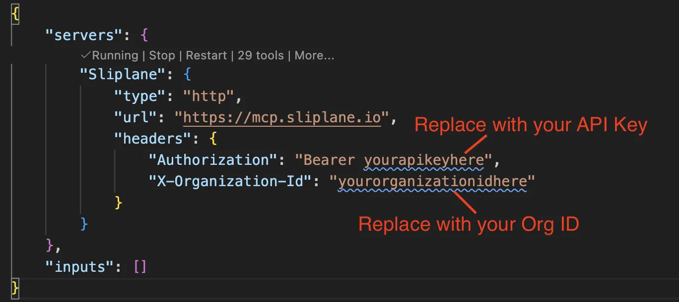 Click the button below to install Sliplane MCP server to VS Code.